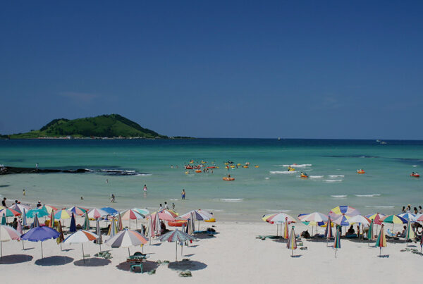 Clear waters and white sands are combined with broken shells, this long and beautiful shoreline offers a mesmerizing view of low-tide, with Biyang do island floating in the distance.