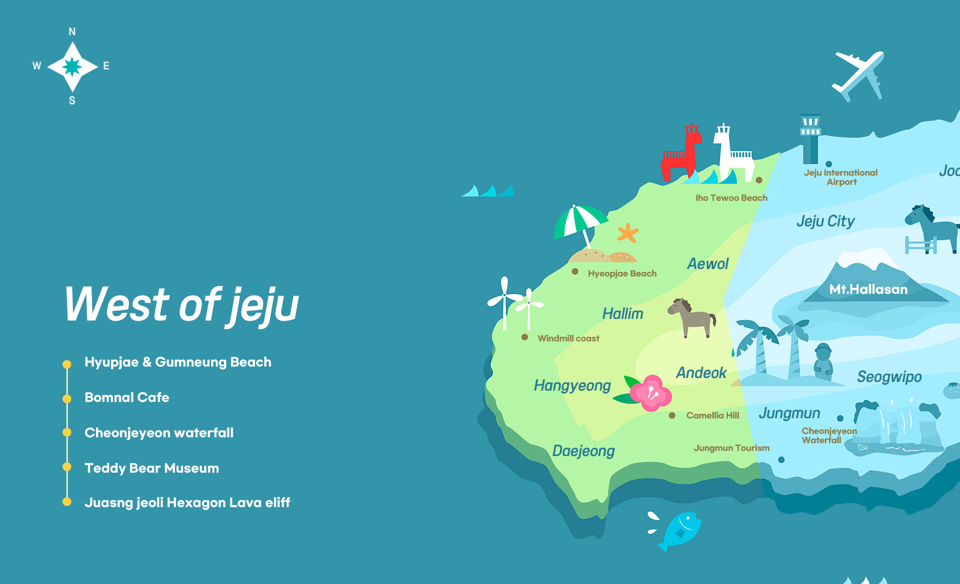 Bomnal café, the first to open on Handam Beach in Aewol, is celebrated for its Jeju hallabong ade. Known for its beautiful sea views, visitors can enjoy their drinks surrounded by colorful murals and charming gift items, all against the backdrop of the sea. The café also features a gift shop filled with Jeju souvenirs.